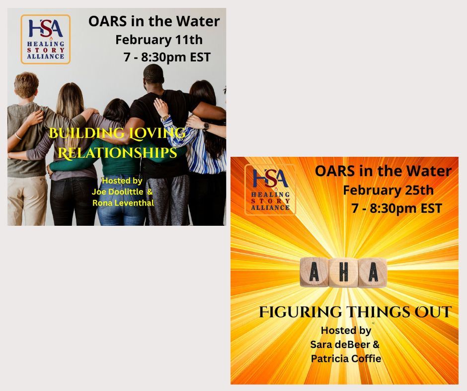 OARS in the Water is a facilitated Zoom gathering that meets on the second and fourth Wednesday of the month at 7 pm Eastern Time. The Healing Story Alliance’s OARS in the Water offers a community listening space in which to share the experiences and stories that have emerged in turbulent times.