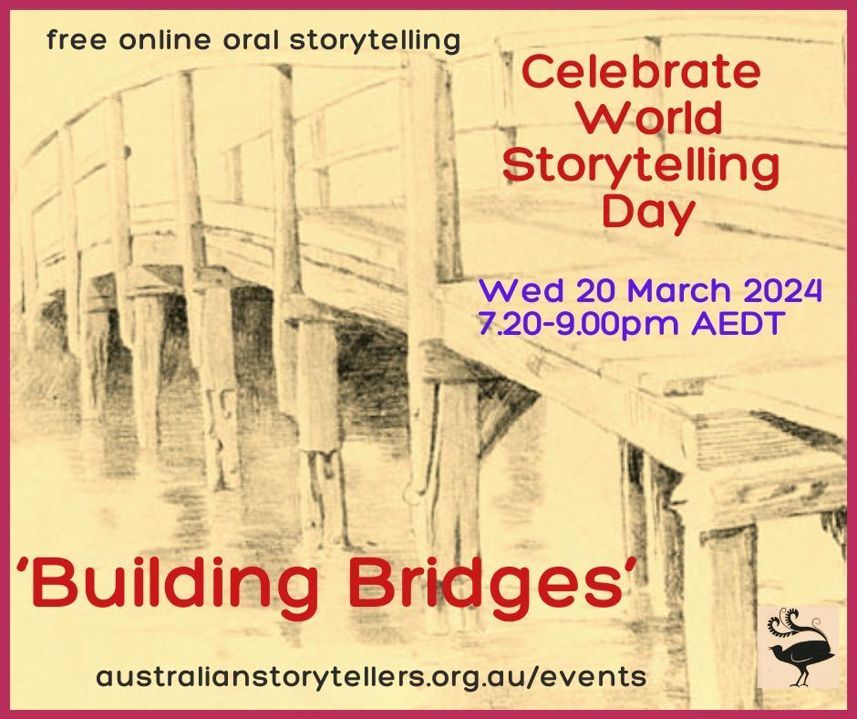 Join us to celebrate World Storytelling Day which has the theme of “Building Bridges”. We will enjoy a blend of folktales, personal stories, and historical tales. Narratives of connection, problem-solving, reconciliation, cultural exchange, understanding, and friendship can build bridges—both real and metaphorical. Stories connect the listener and the teller with each other, and there is power in those connections.