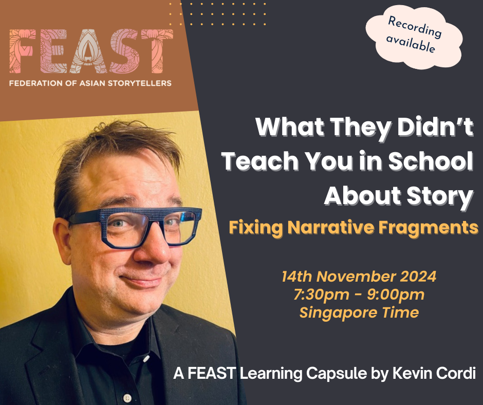 Since SAS is an institutional member of FEAST (Federation of Asian Story Tellers), 5 members of SAS can attend this workshop at FEAST member’s rate of SGD$7 (standard rate is SGD$15). Sign up quickly to be the first 5 SAS members to enjoy this rate! Email feastwebinars@gmail.com to get this special rate.