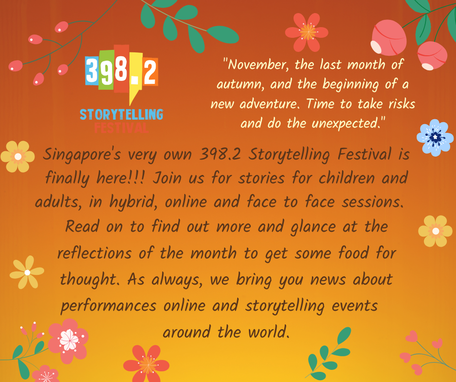 We have storytelling for children and family online from 4th to 8th November and in person on the 9th and 10 November