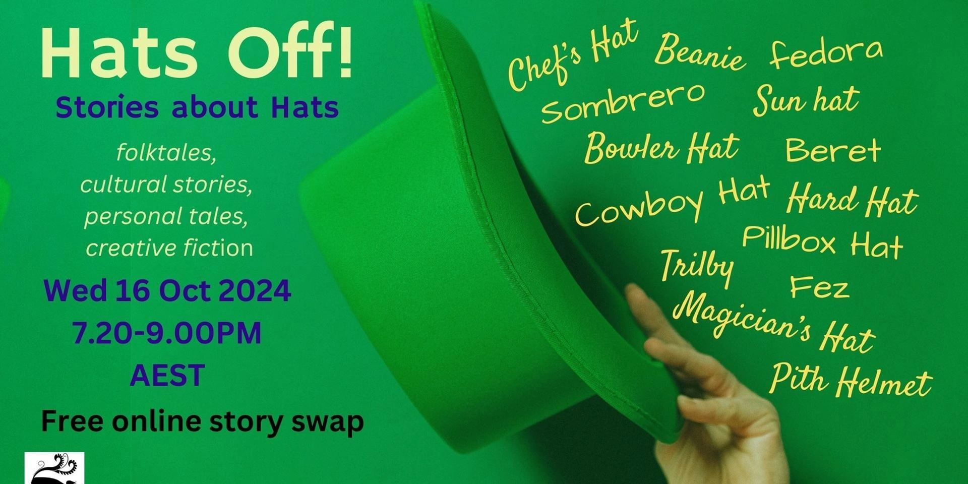 Every hat has a story to tell. Join us for a story swap that will include folktales, legends, personal stories and creative fiction about the diverse world of hats. From ceremonial headdresses with ancient rituals to whimsical fashion statements and practical safety gear, each story will explore the rich symbolism and history or the magical whimsy embedded in these everyday accessories.